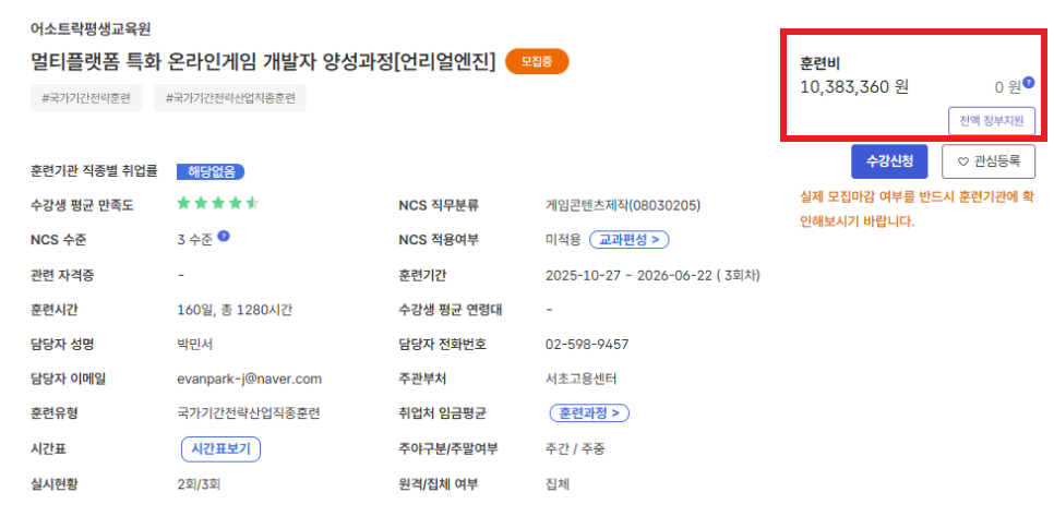 게임프로그래밍학원을 다니고 싶지만 비용이 걸림돌이었던 분들에게는 큰 장점이 되는 부분이죠!
