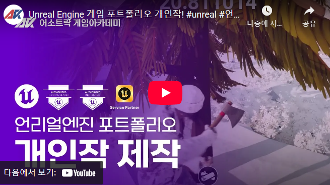 언리얼엔진 독학 이제 그만! 공인 게임개발학원 실무과정 모집 시작