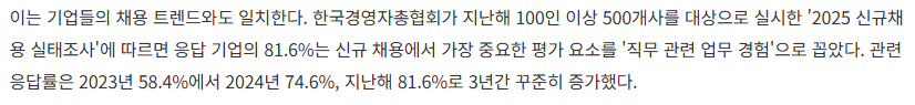 최근 미디어 커뮤니케이션을 전공한 백 씨의 사례를 보면, 다수의 채용 공고가 사실상 경력을 전제로 한 채용이어서