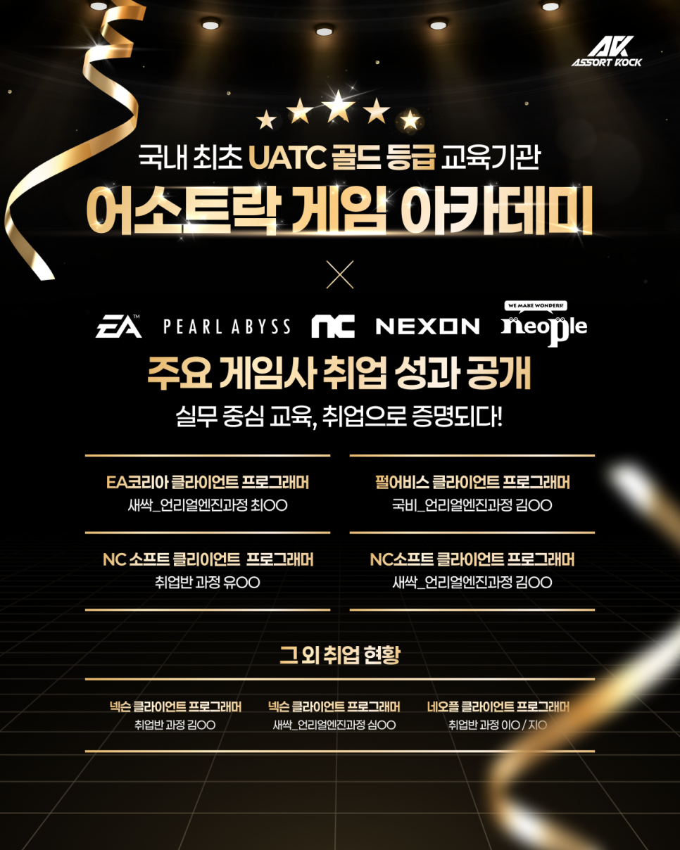 또한 어소트락은 국내 최초로 에픽게임즈✨공식 UATC GOLD 등급✨을 획득한 교육기관으로,